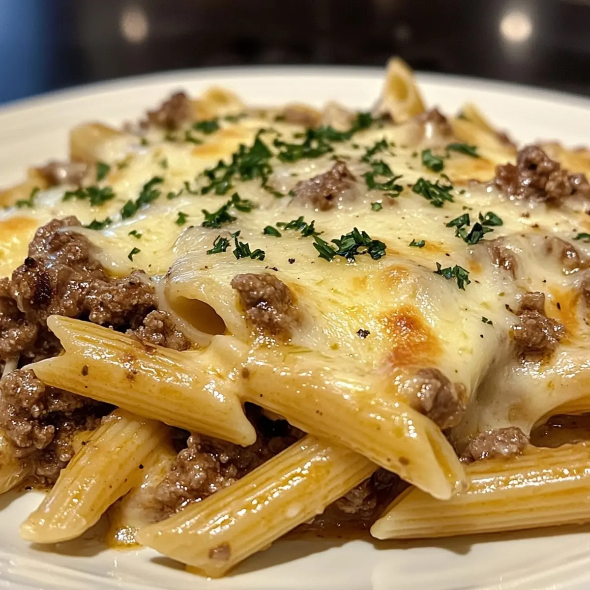 Irresistibly Cheesy Penne with Garlic Butter Ground Beef