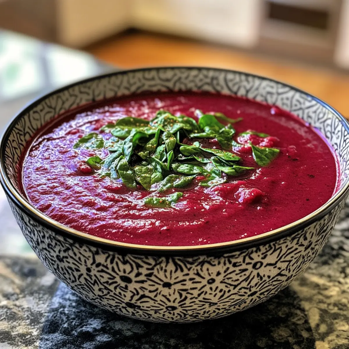 Warm, Nourishing Delight: This vibrant soup combines sweet beets and fresh spinach, creating a hearty and satisfying dish perfect for chilly evenings.