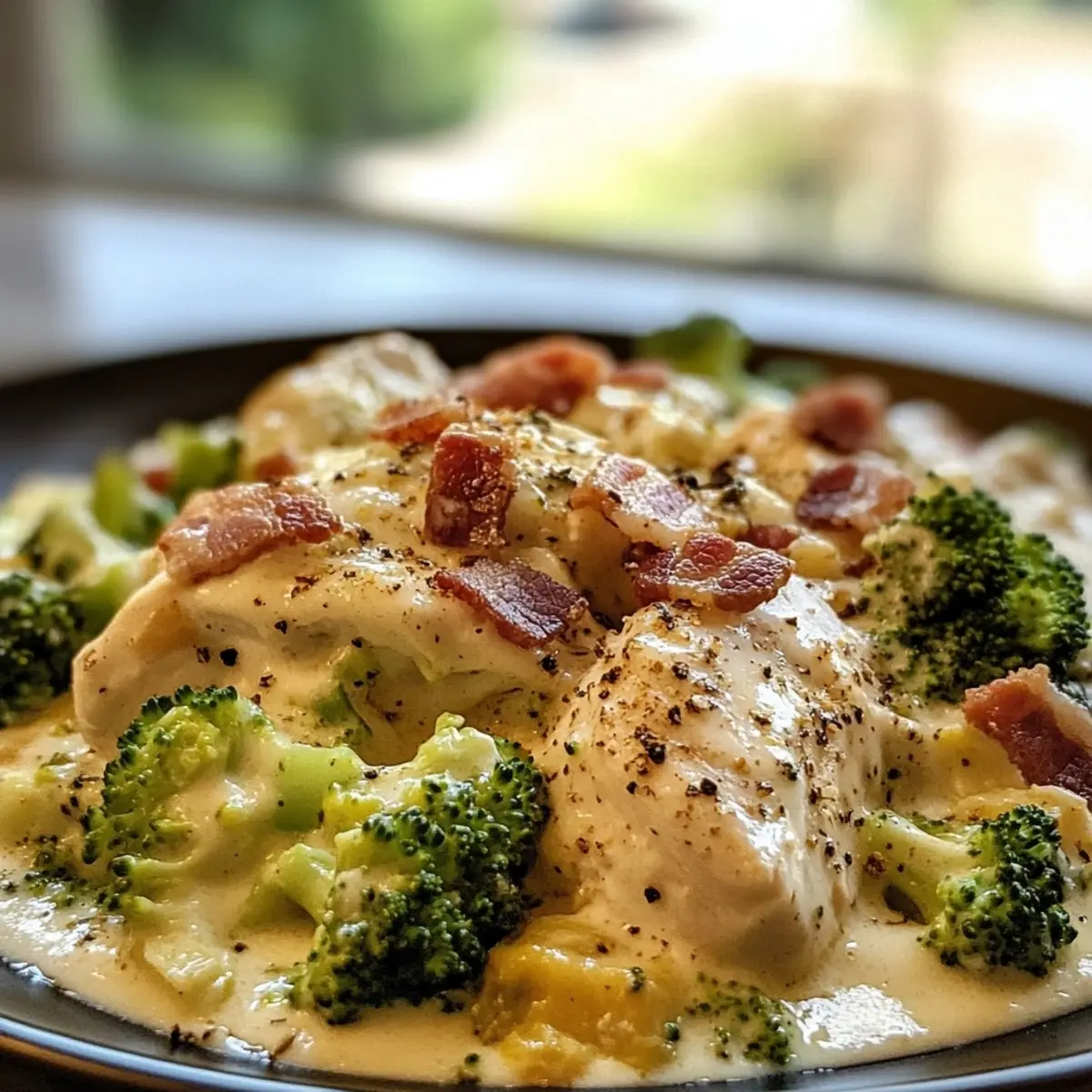 Irresistibly Easy Creamy Low Carb Chicken Casserole with Broccoli and Bacon