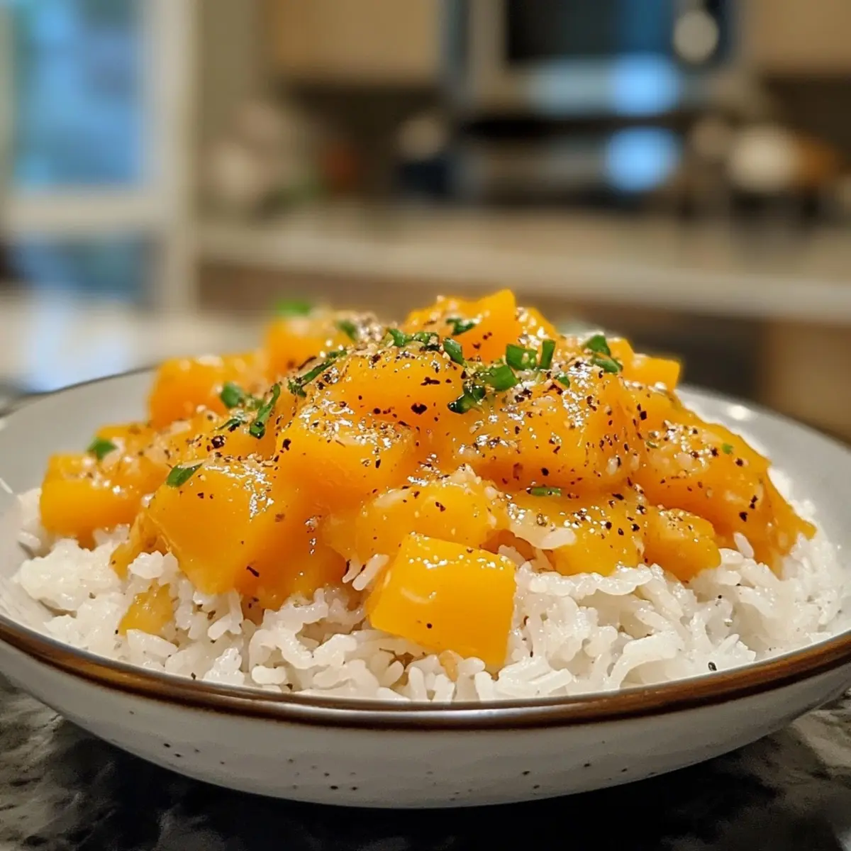 Combine Ingredients: Gently stir in the kabocha cubes, rinsed jasmine rice, coconut milk, vegetable broth, salt, and pepper. Ensure everything is well mixed to absorb the delightful flavors.