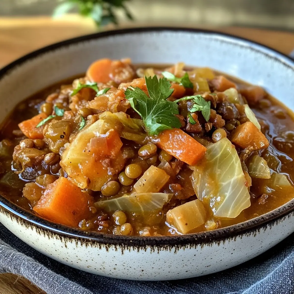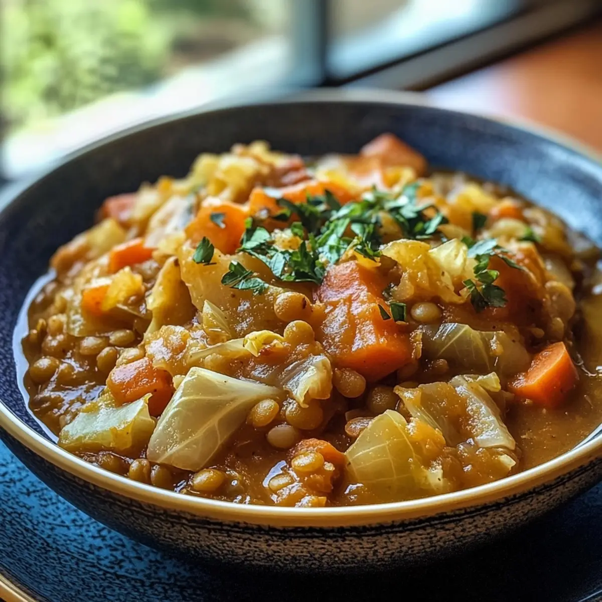 Deliciously Hearty Cozy Cabbage & Lentil Root Vegetable Stew Recipe