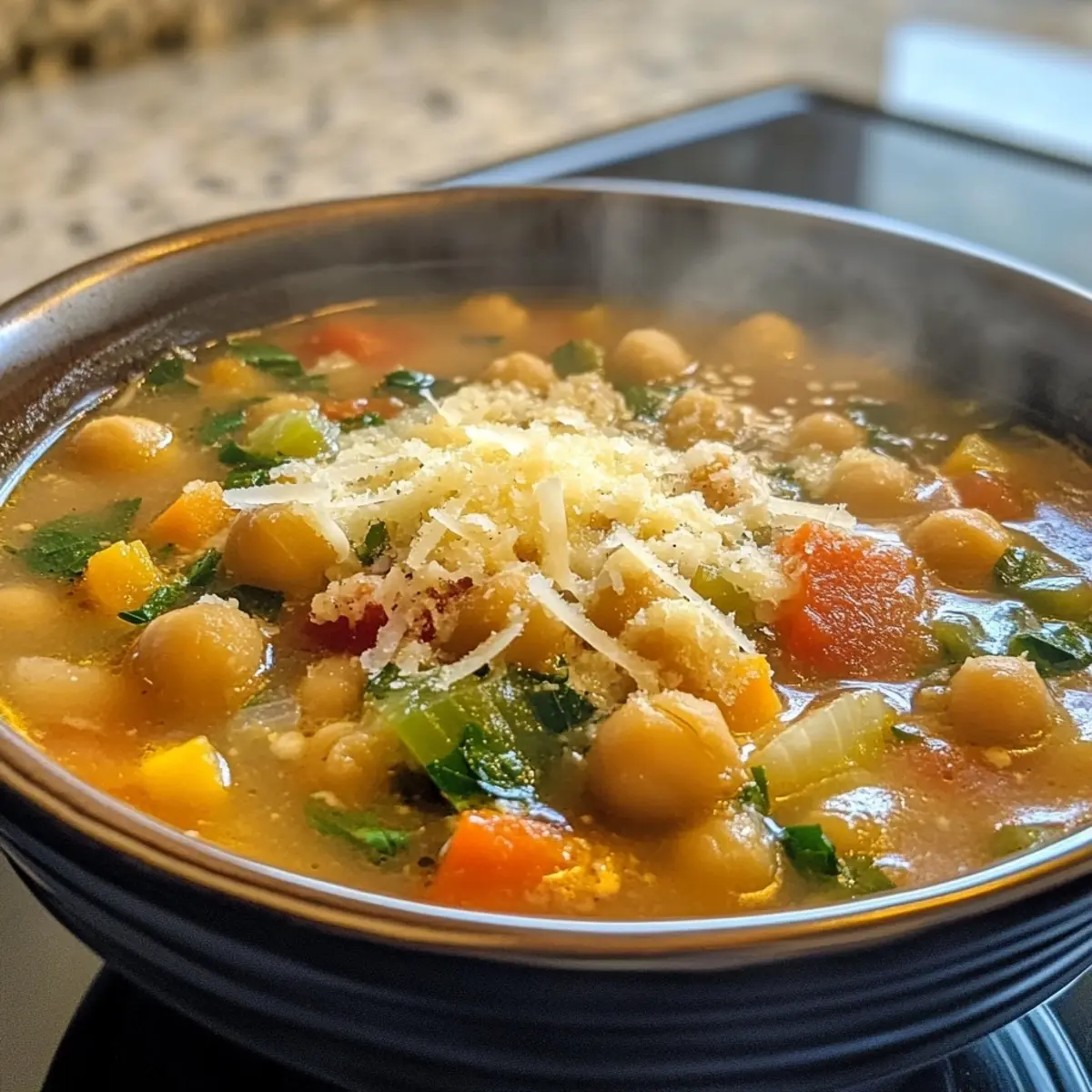 Hearty Cozy Chickpea Vegetable Soup with Parmesan & Lemon Bliss
