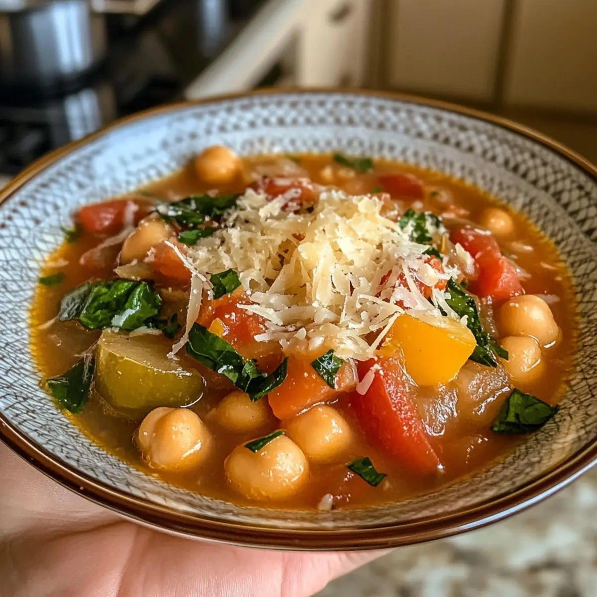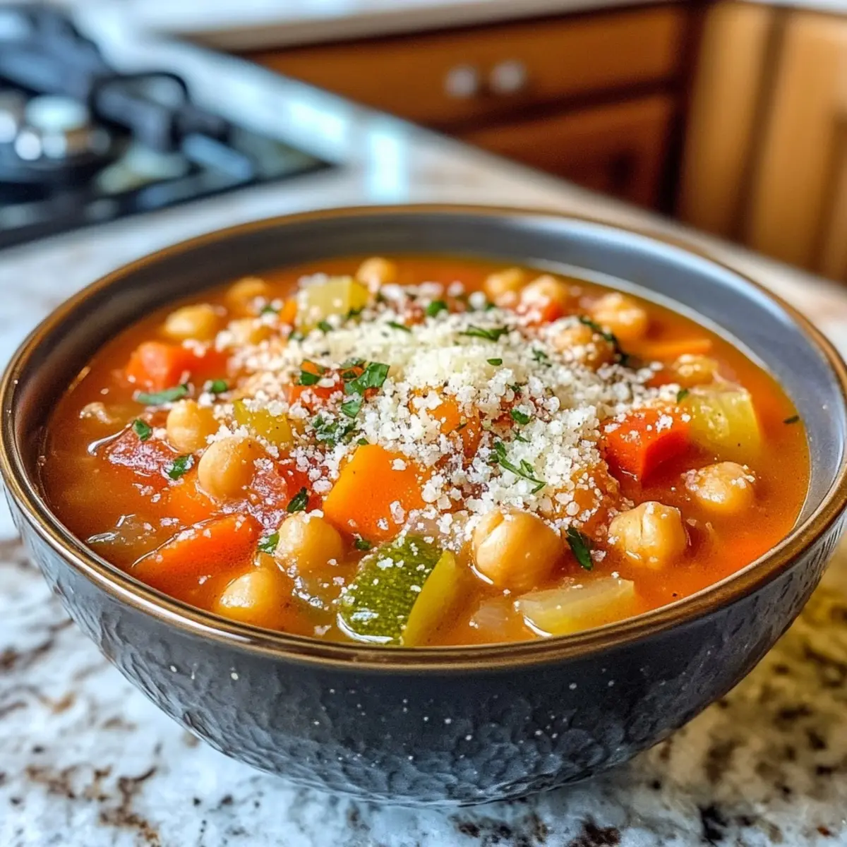 Hearty Cozy Chickpea Vegetable Soup with Parmesan & Lemon Bliss