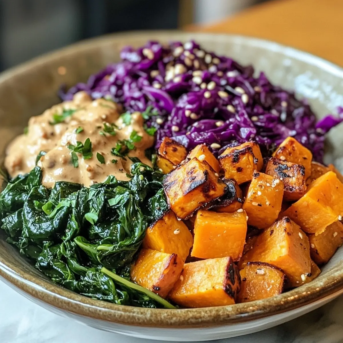 Embrace the warmth and comfort of each side, making your Hearty Winter Cabbage & Spinach Sweet Potato Bowl even more enjoyable!