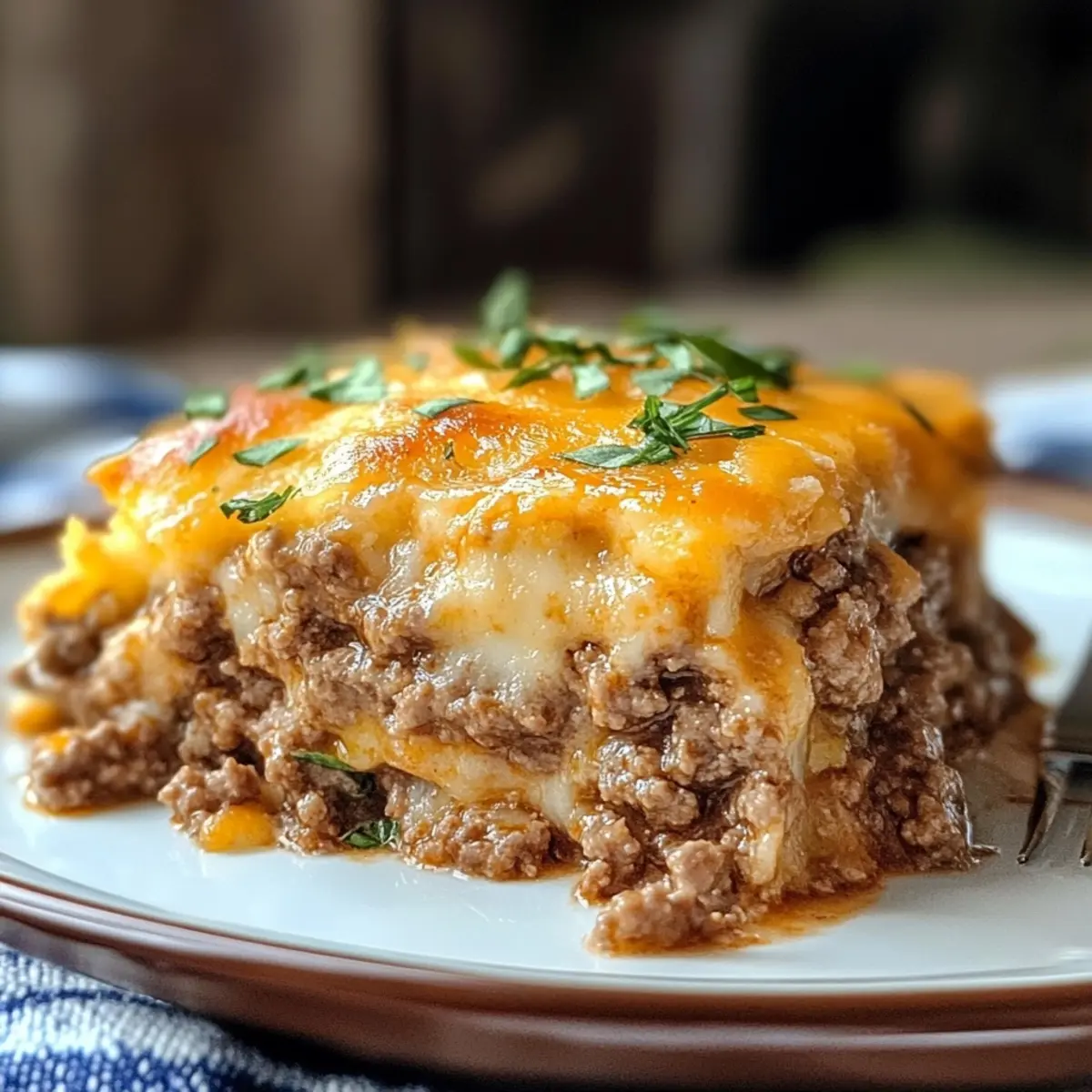 Comforting and Hearty: This casserole combines tender potatoes, savory ground beef, and melty cheese, creating a warm dish that hugs you from the inside out.
