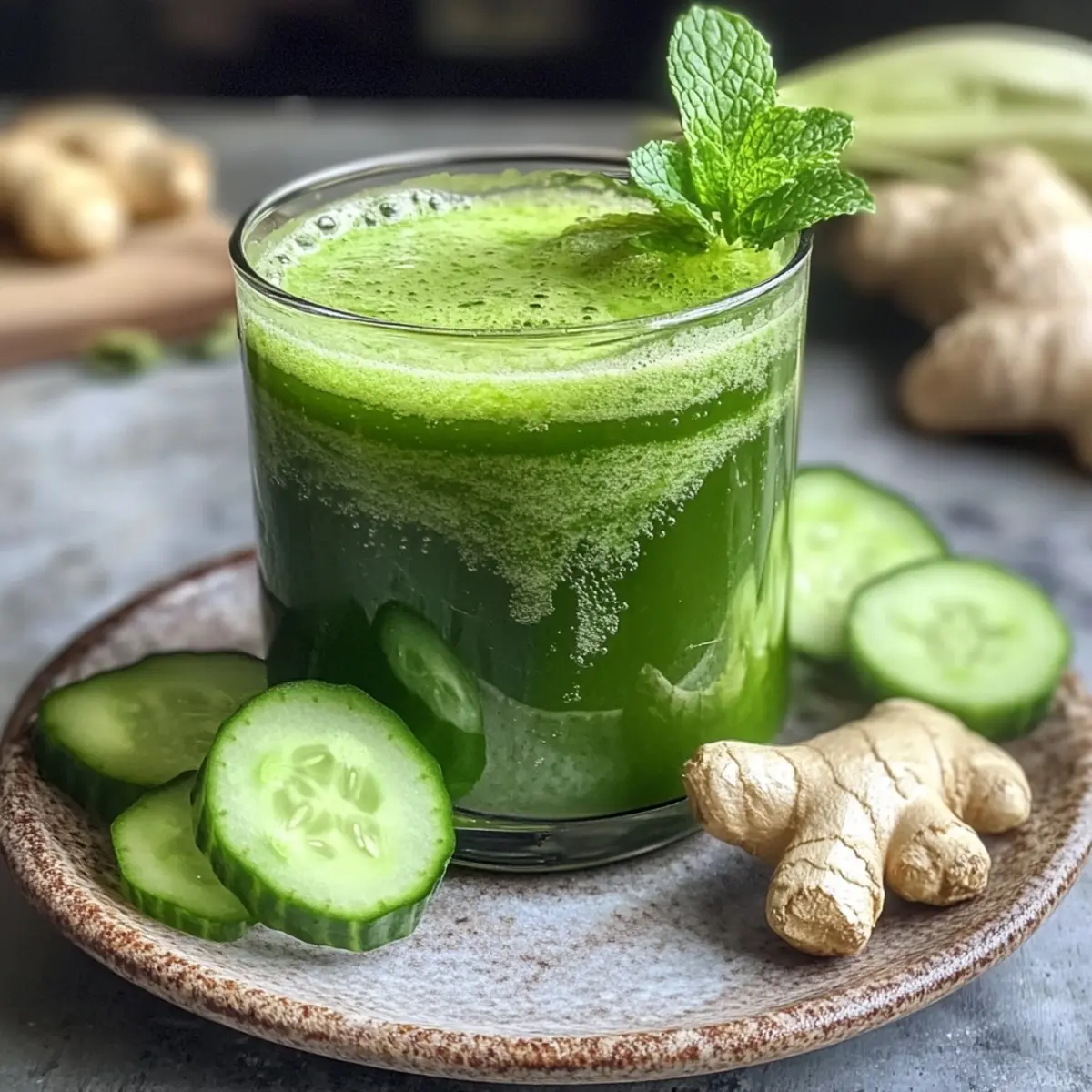 Energizing Invigorating Refreshing Winter Green Juice with Cucumber & Ginger