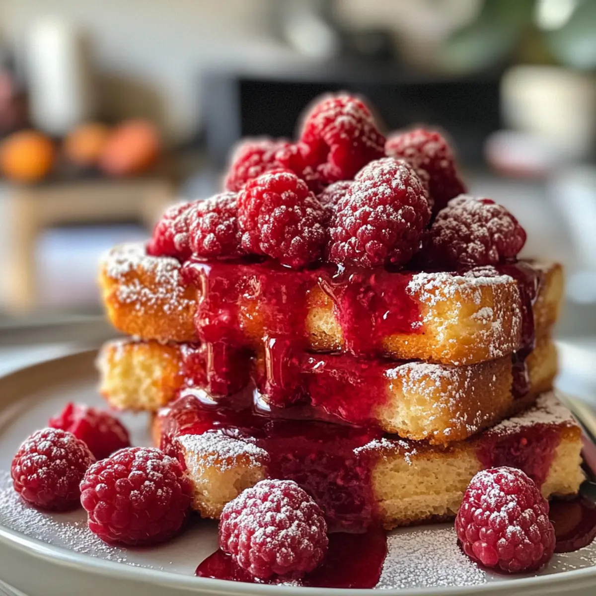 6. Dust each serving generously with powdered sugar, and garnish with extra fresh raspberries. Drizzle with maple syrup if desired for an extra indulgent touch!