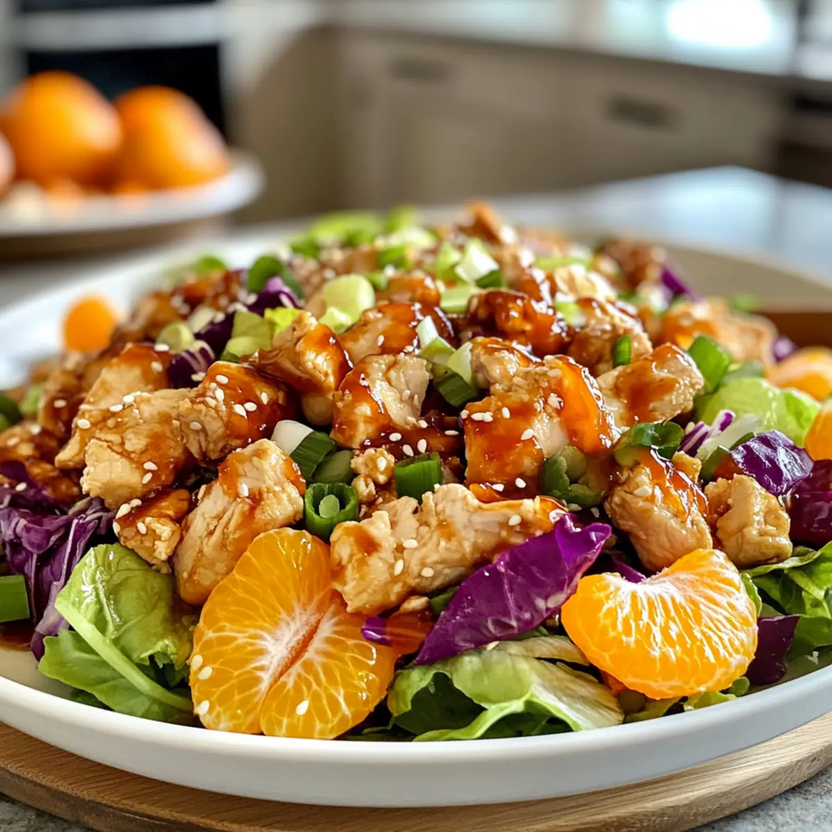 4. Assemble Salad: In a large bowl, combine the mixed greens, sliced chicken, mandarin oranges, green onions, and the cooled ramen noodles. Drizzle generously with the dressing, ensuring every bite bursts with flavor.