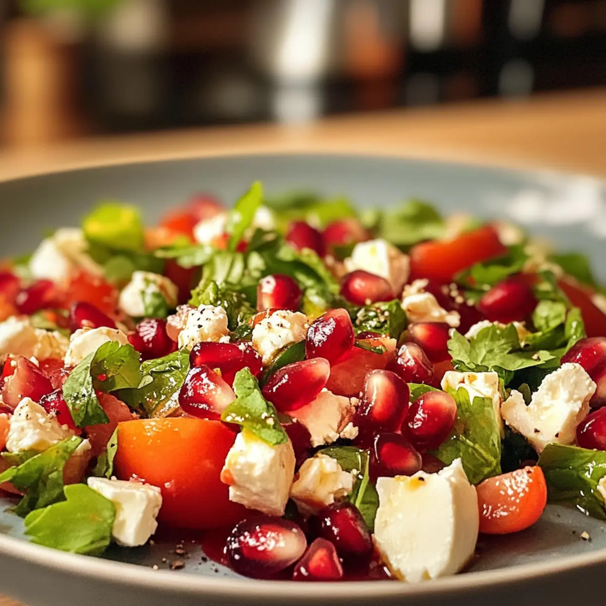 Colorful Presentation: The vivid hues of pomegranate seeds and fresh greens make this salad visually stunning, transforming any meal into a feast for the eyes.