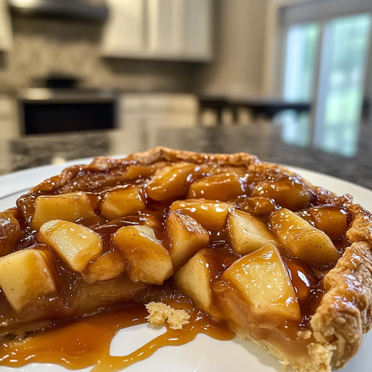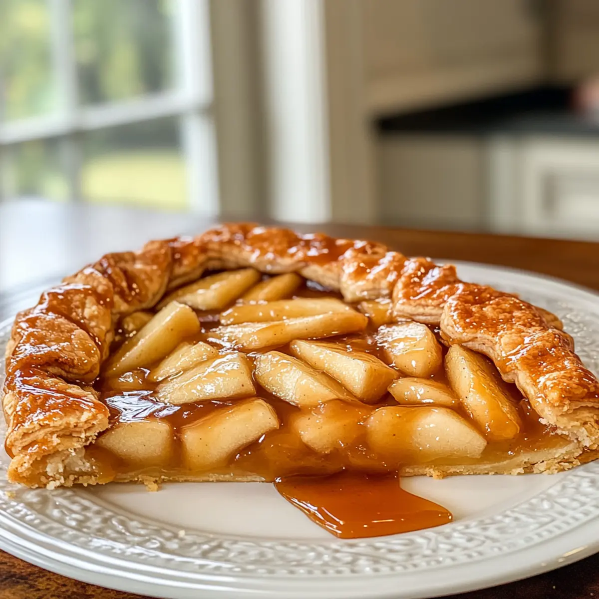 - Drizzle the warm caramel sauce over the baked galette and serve it warm or at room temperature.