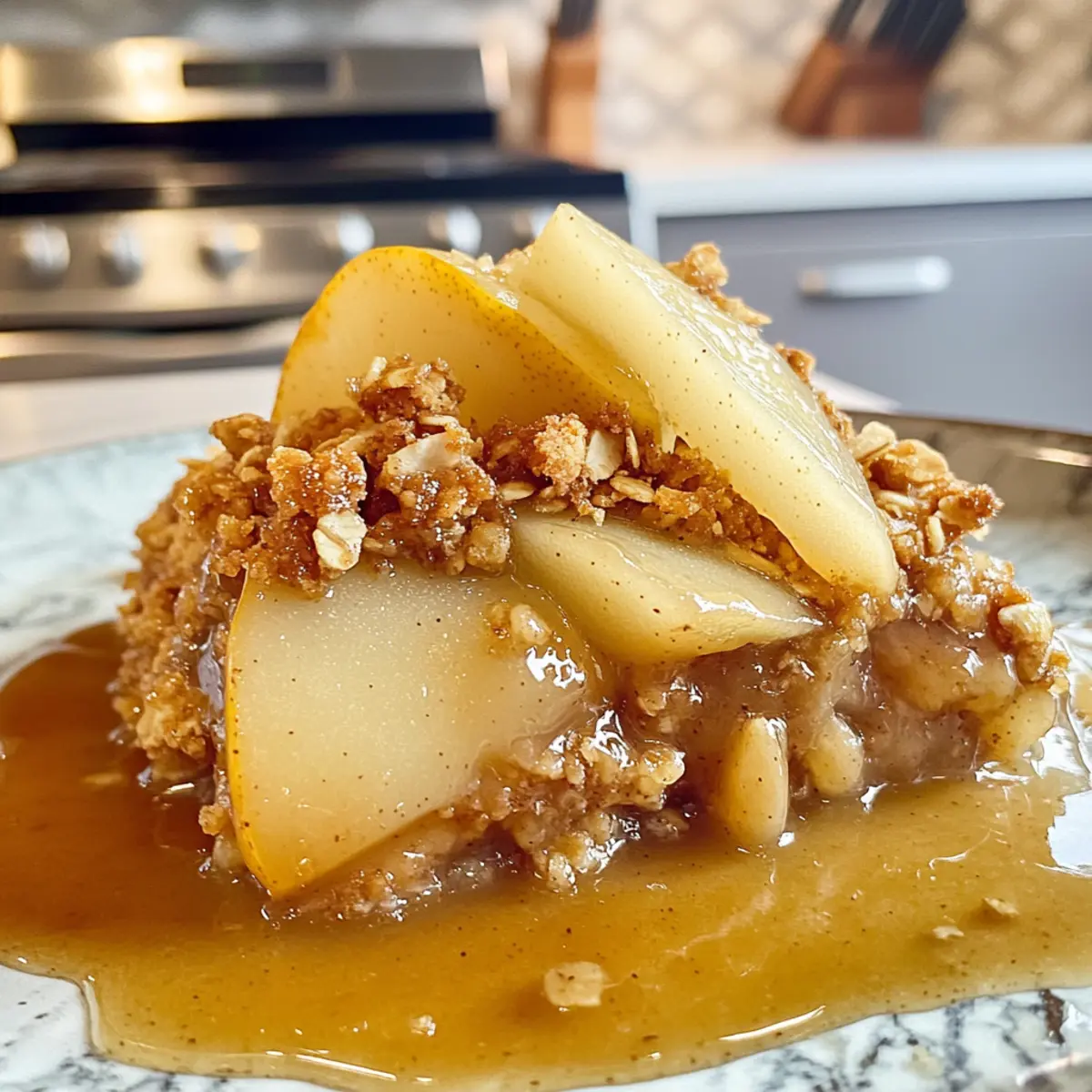 Bake in the preheated oven for 30-35 minutes, or until the topping is golden brown and the pears are tender. The delicious aroma will fill your kitchen!
