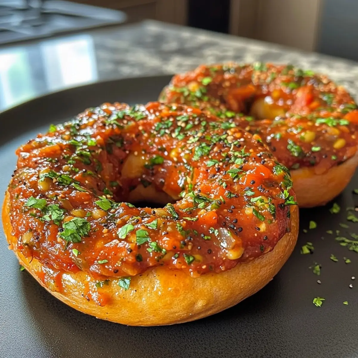 Irresistible Spicy Bagel with Zesty Tomato Bean Spread Bliss