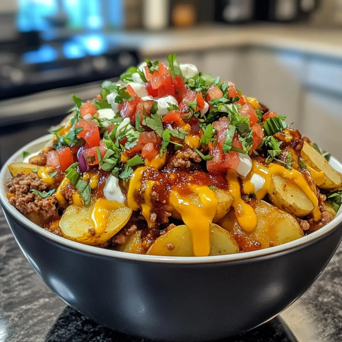 You can store the components of your Loaded Potato Taco Bowl in airtight containers in the fridge for up to 3–4 days. Make sure to keep the avocado and other fresh toppings separate to maintain their quality. When you’re ready to enjoy, just reheat the potatoes and meat mixture together for a quick meal!