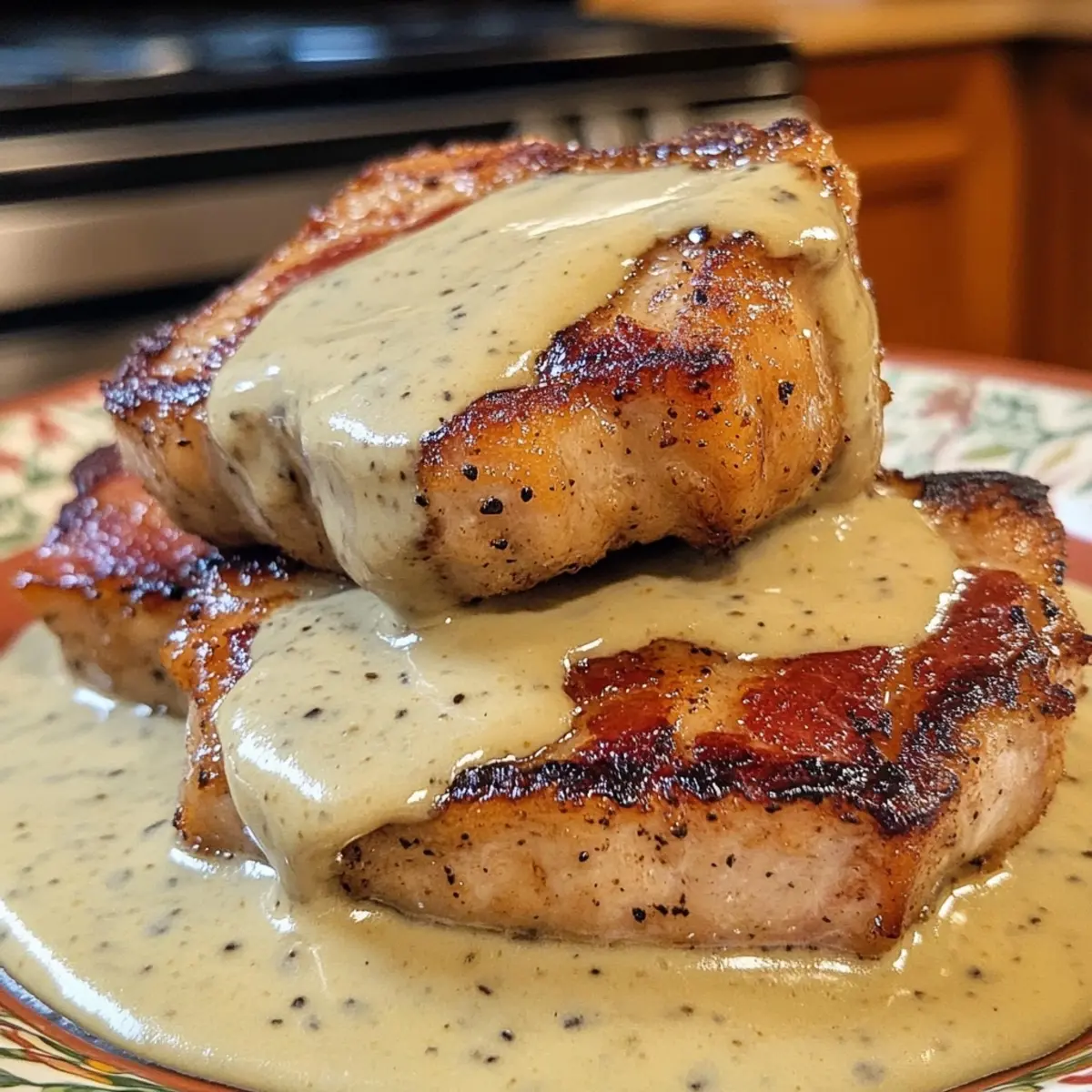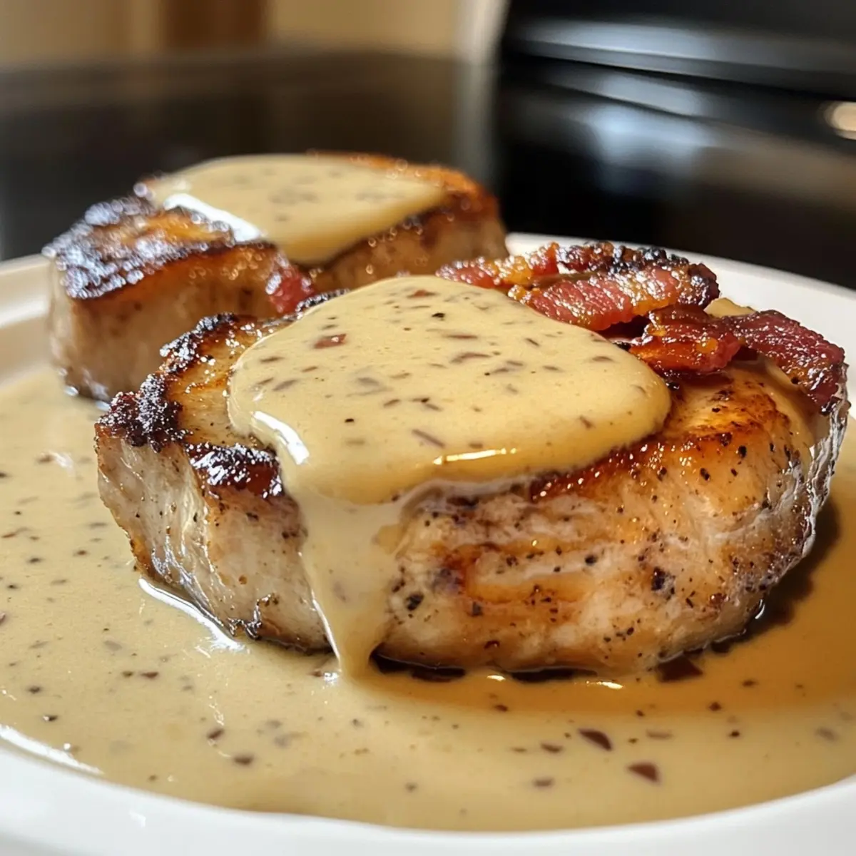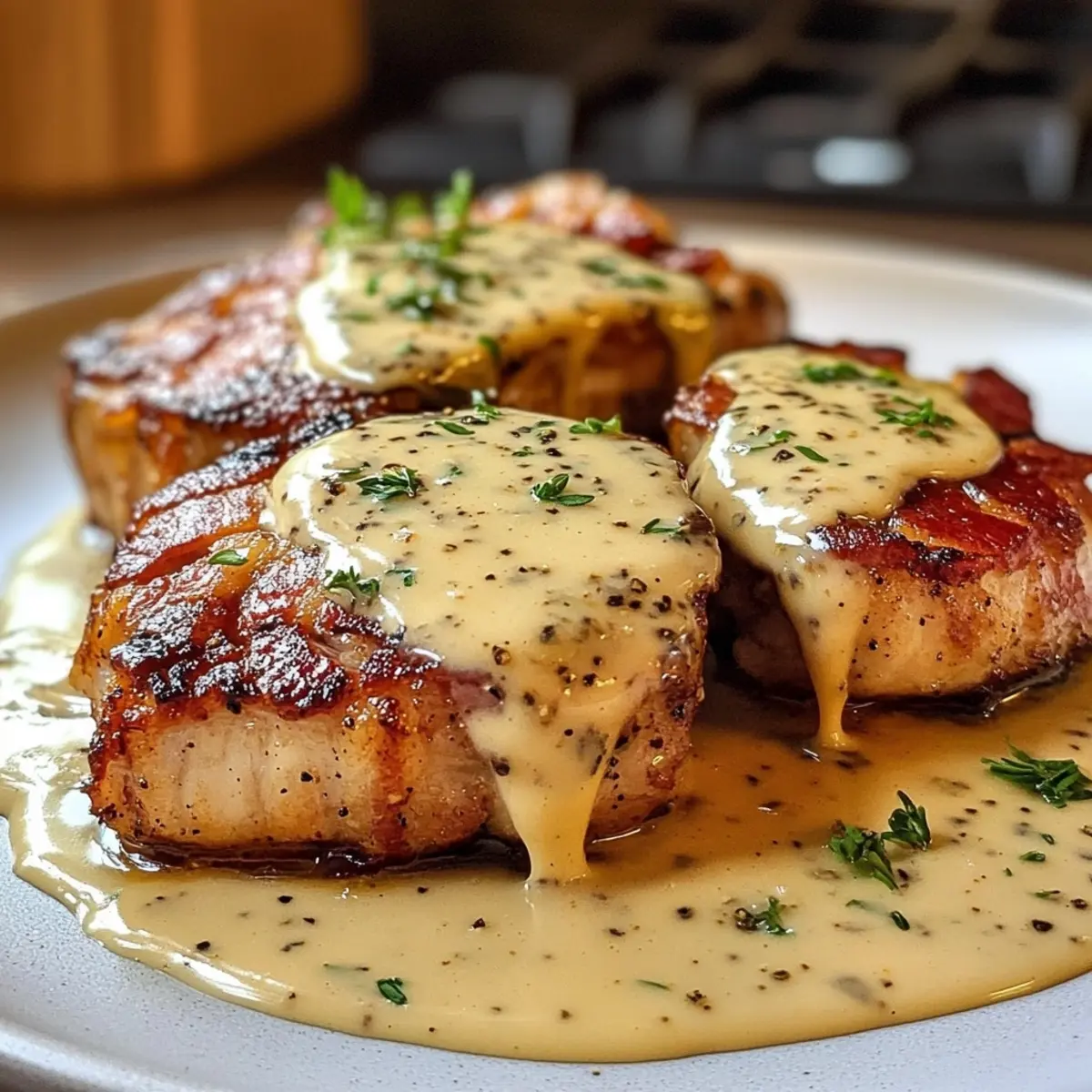 Indulgent Maple Bacon Pork Chops with Dijon Mustard Cream Sauce