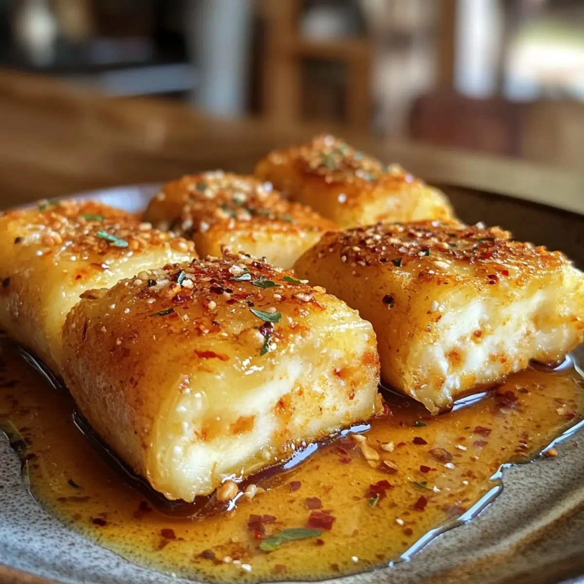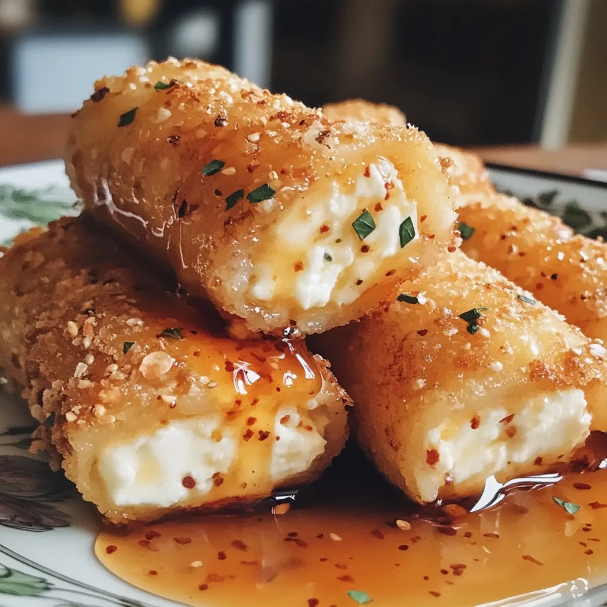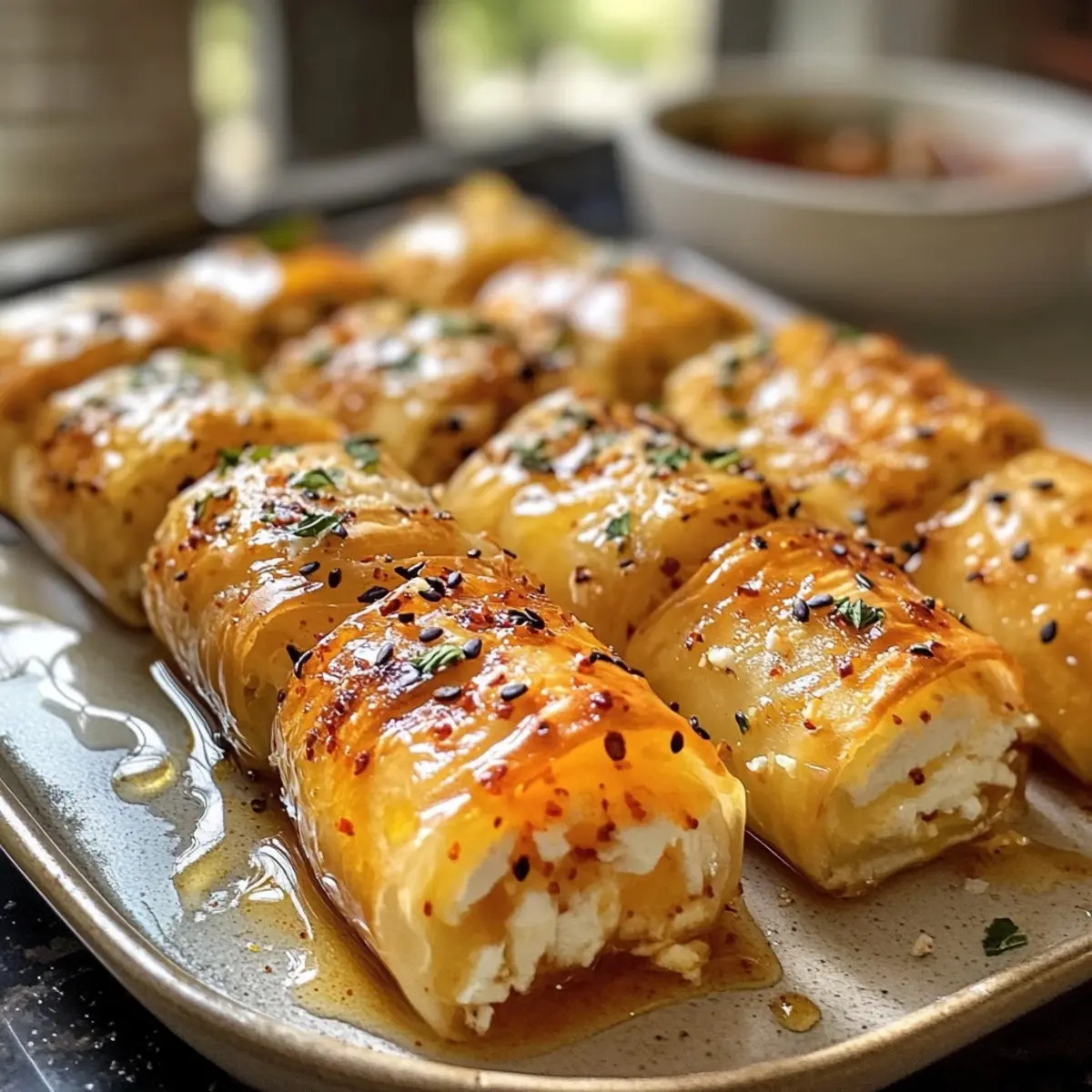 Irresistibly Easy Oven-Fried Feta Rolls with Chili Honey