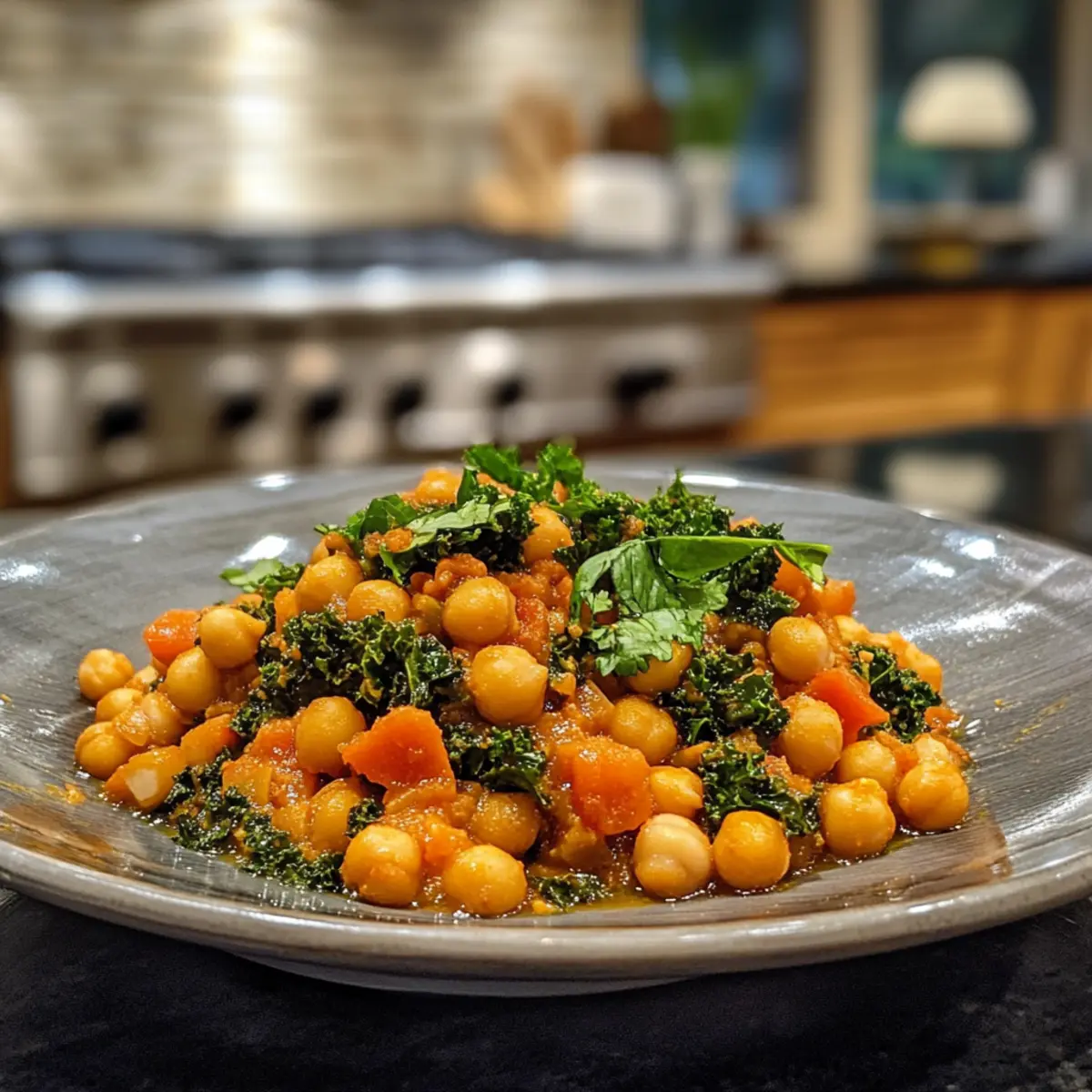 Add Chickpeas and Kale: Once simmering, stir in the chickpeas and chopped kale. Cook for another 10 minutes until heated through and the kale has wilted beautifully, creating a rich and creamy curry.