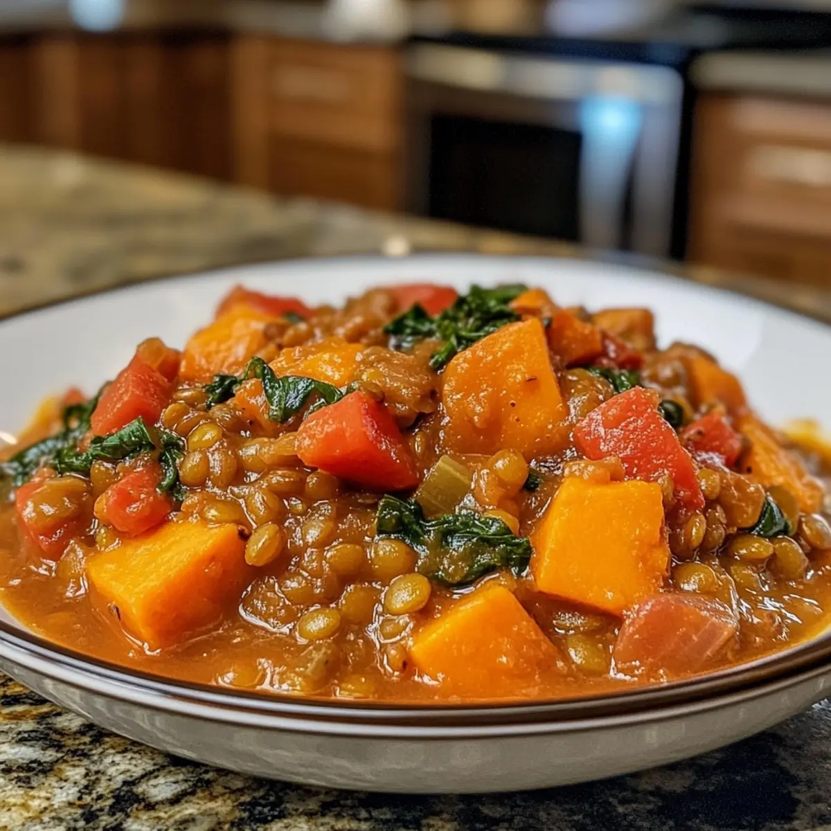 Dinner / Irresistibly Savory Hearty Garlic & Sweet Potato Lentil Stew