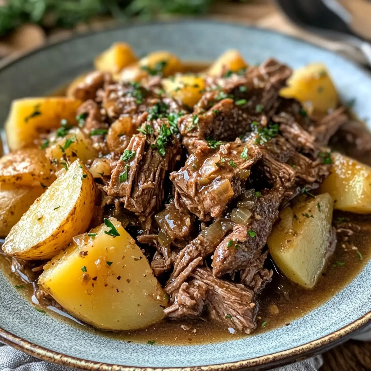 Irresistibly Easy Slow Cooker Garlic Butter Beef with Potatoes