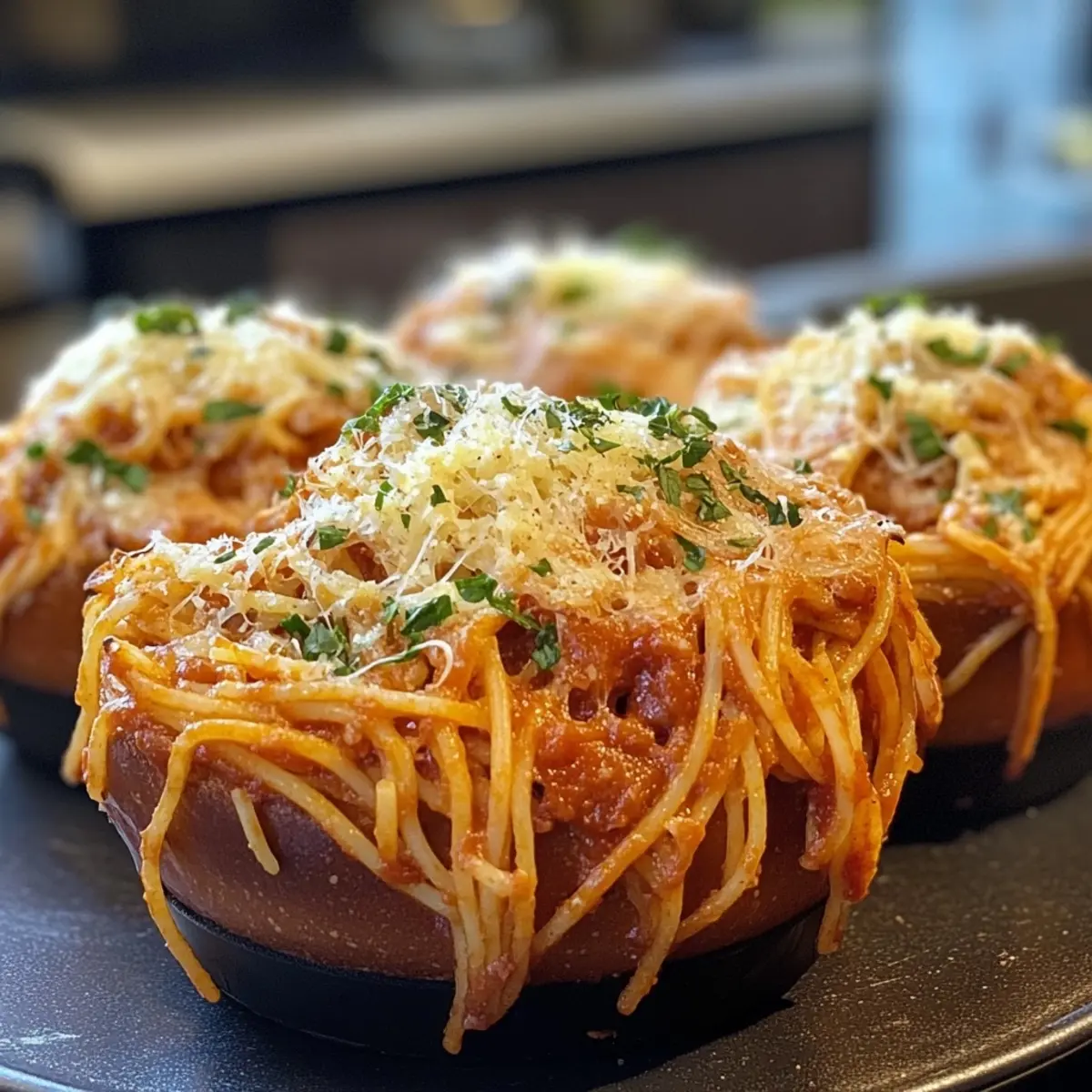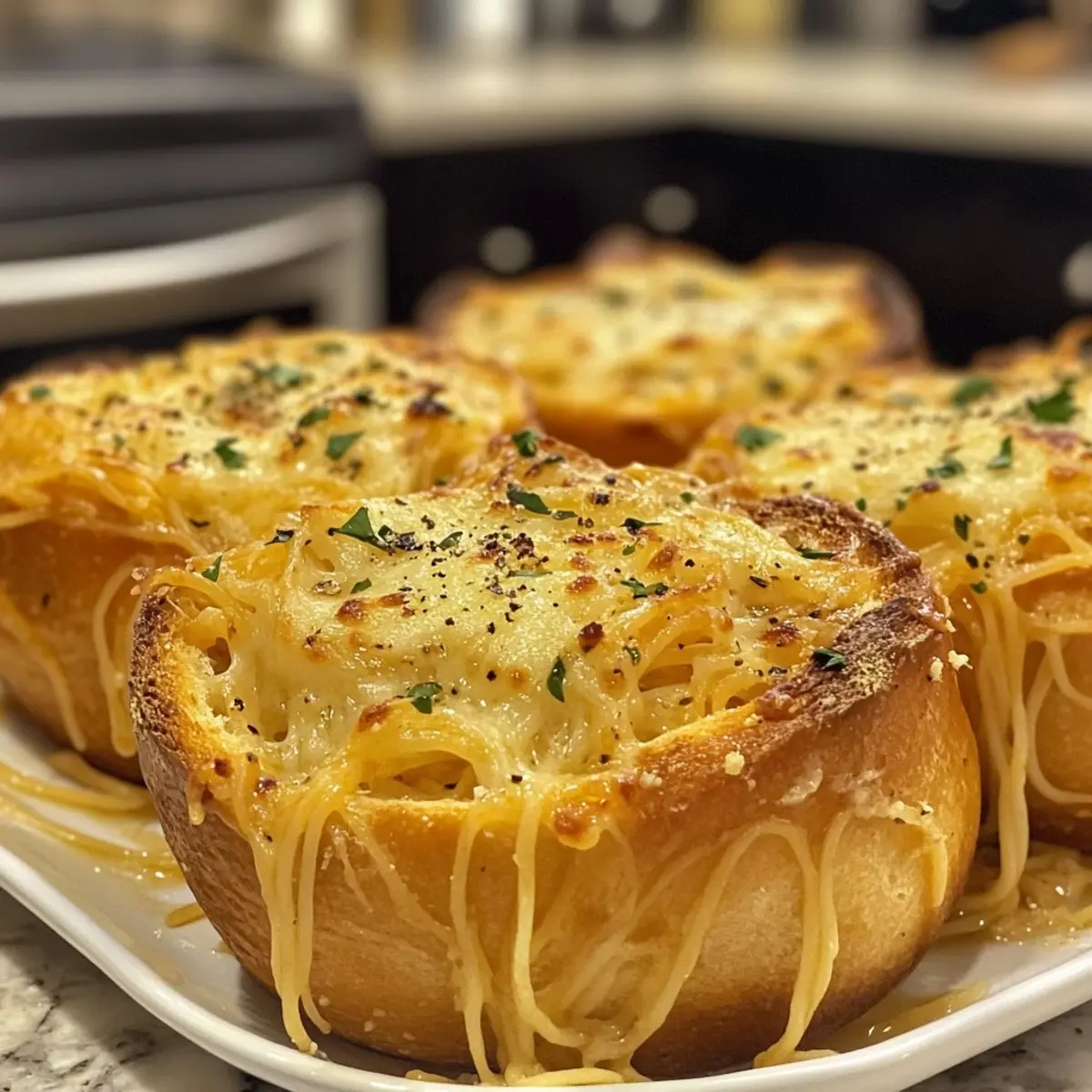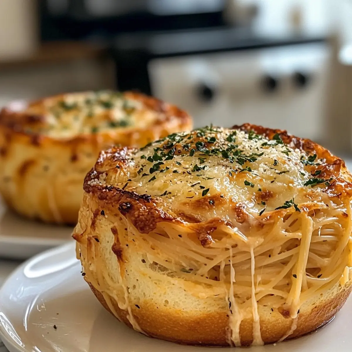 Experience cozy indulgence with Spaghetti Garlic Bread Bowls, combining two beloved comfort foods into one delightful dish.