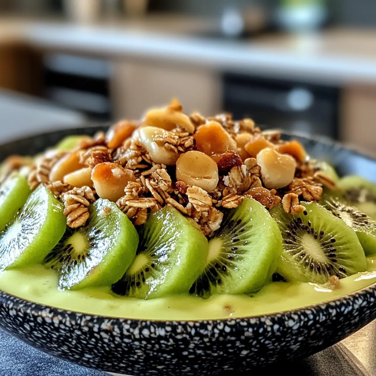 - Add Crunch: Evenly sprinkle granola over the kiwi layer.