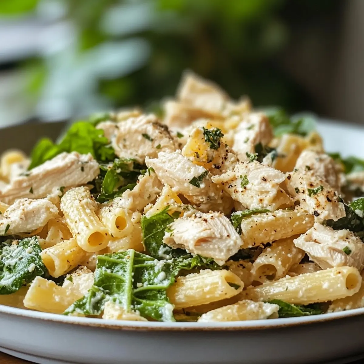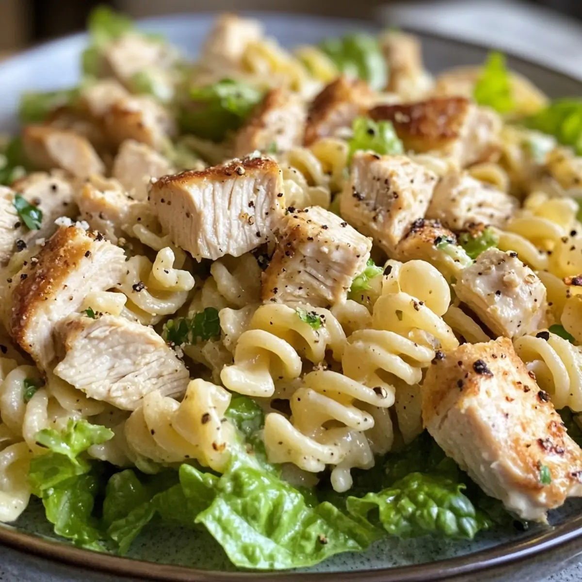 Creamy flavor explosion: The tangy Caesar dressing pairs perfectly with tender chicken and pasta.